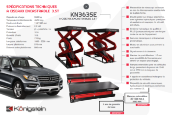 Les rampes de levage assurent un positionnement précis du véhicule, tandis que le système hydraulique garantit des mouvements fluides et maîtrisés. L’élévateur à ciseaux intégré améliore l’ergonomie de travail en offrant un accès optimal aux trains roulants et aux parties inférieures du véhicule.