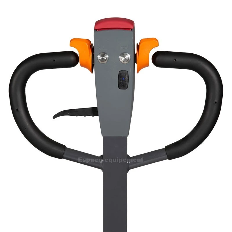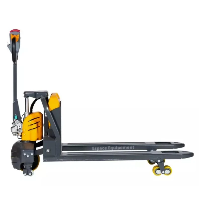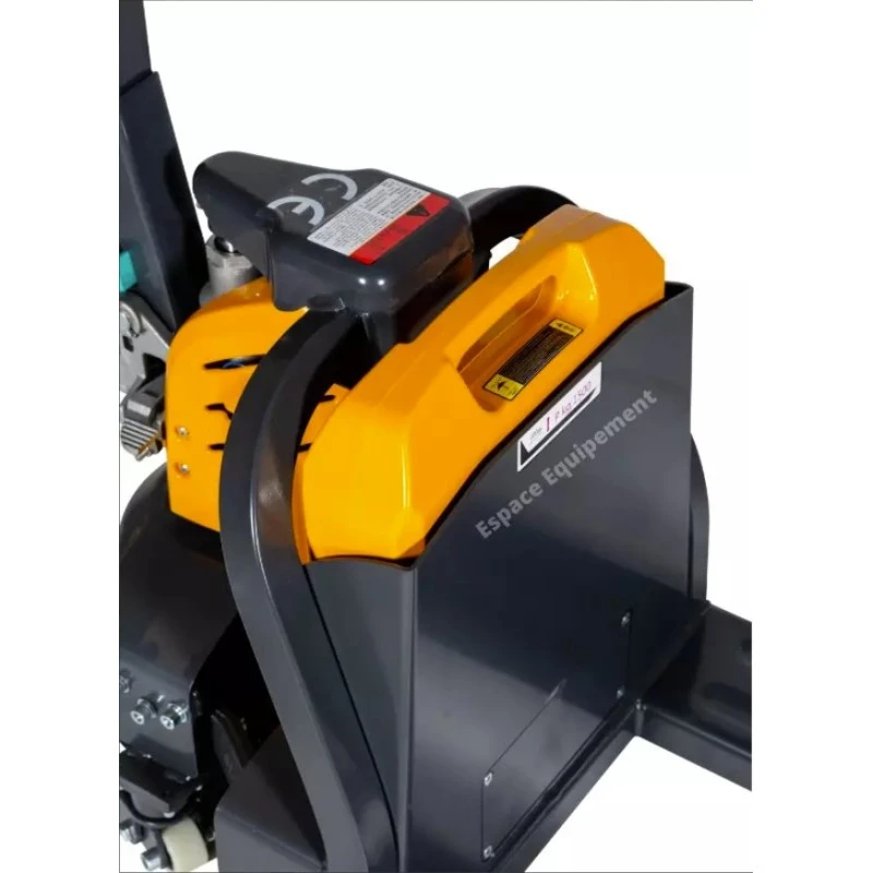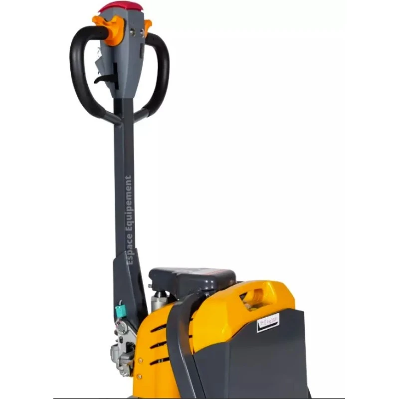 Transpalette électrique avec levage et propulsion motorisés, capacité de charge 1500–2000 kg. Conçu pour la manutention rapide et efficace en entrepôt, logistique ou zone de production.